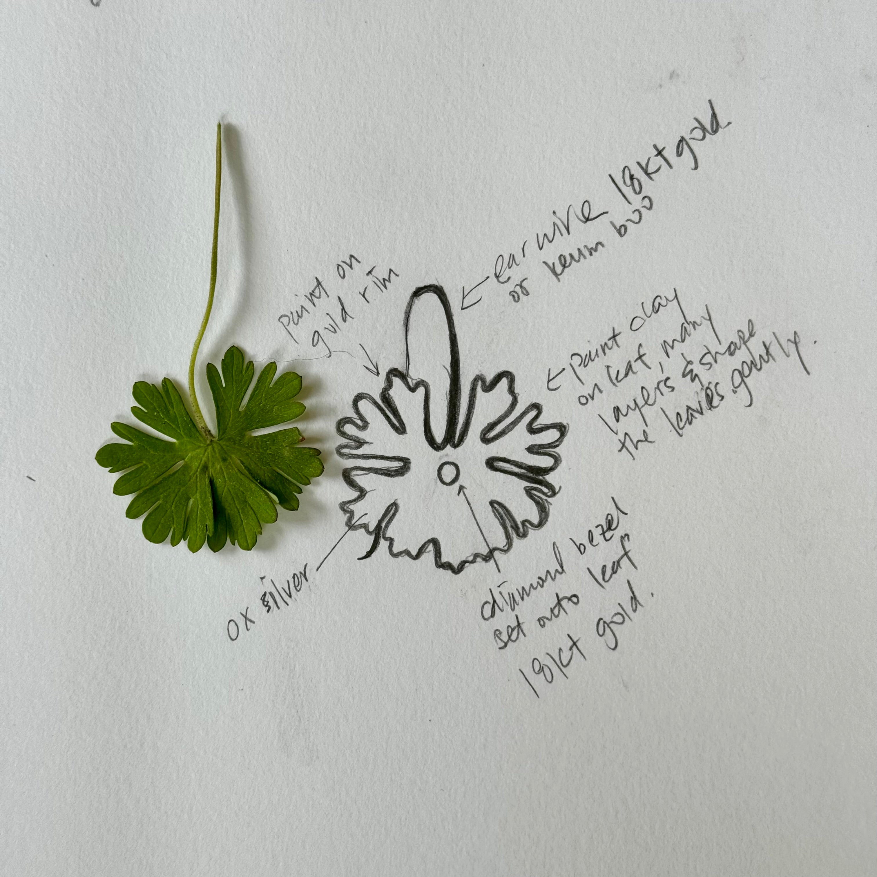Every design begins with a moment of discovery — a found object chosen for its shape or story. Through meticulous mold-making, Nancy captures its essence in sterling silver or 18K gold, often complemented by ethically sourced gemstones.