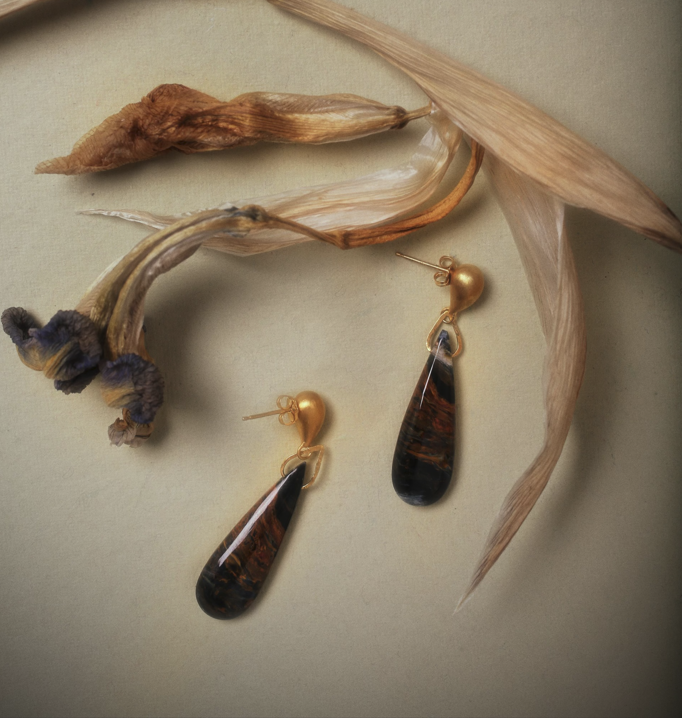 Fan and Kite Pietersite Drop Earrings